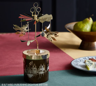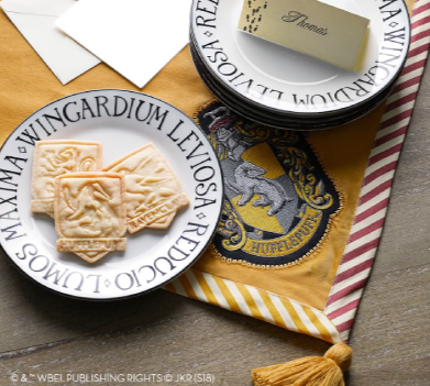 Dark academia fantasy — Hogwarts house crests, jewel tones, velvet and metallic. Tabletop & entertaining.